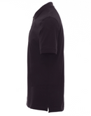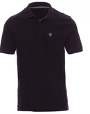 Polo da uomo a manica corta con 3 bottoni in tinta effetto perlato, colletto e bordo manica a costine, spacchetti laterali, cuciture del collo coperte con nastro a contrasto, cuciture stretch, nastro di rinforzo laterale, rinforzo sagomato retro collo.