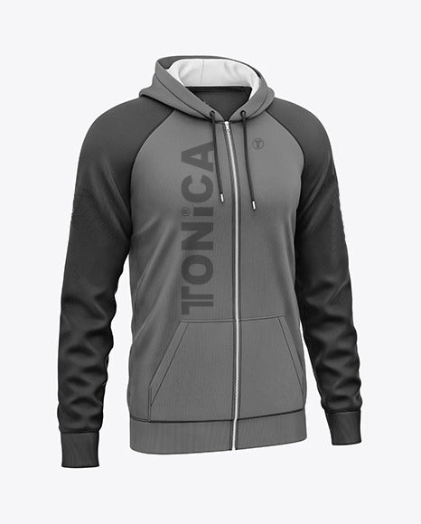 FELPA da uomo Full zip, con cappuccio cuciture del collo coperte con nastro parasudore, cuciture stretch, tasche a toppa sul davanti