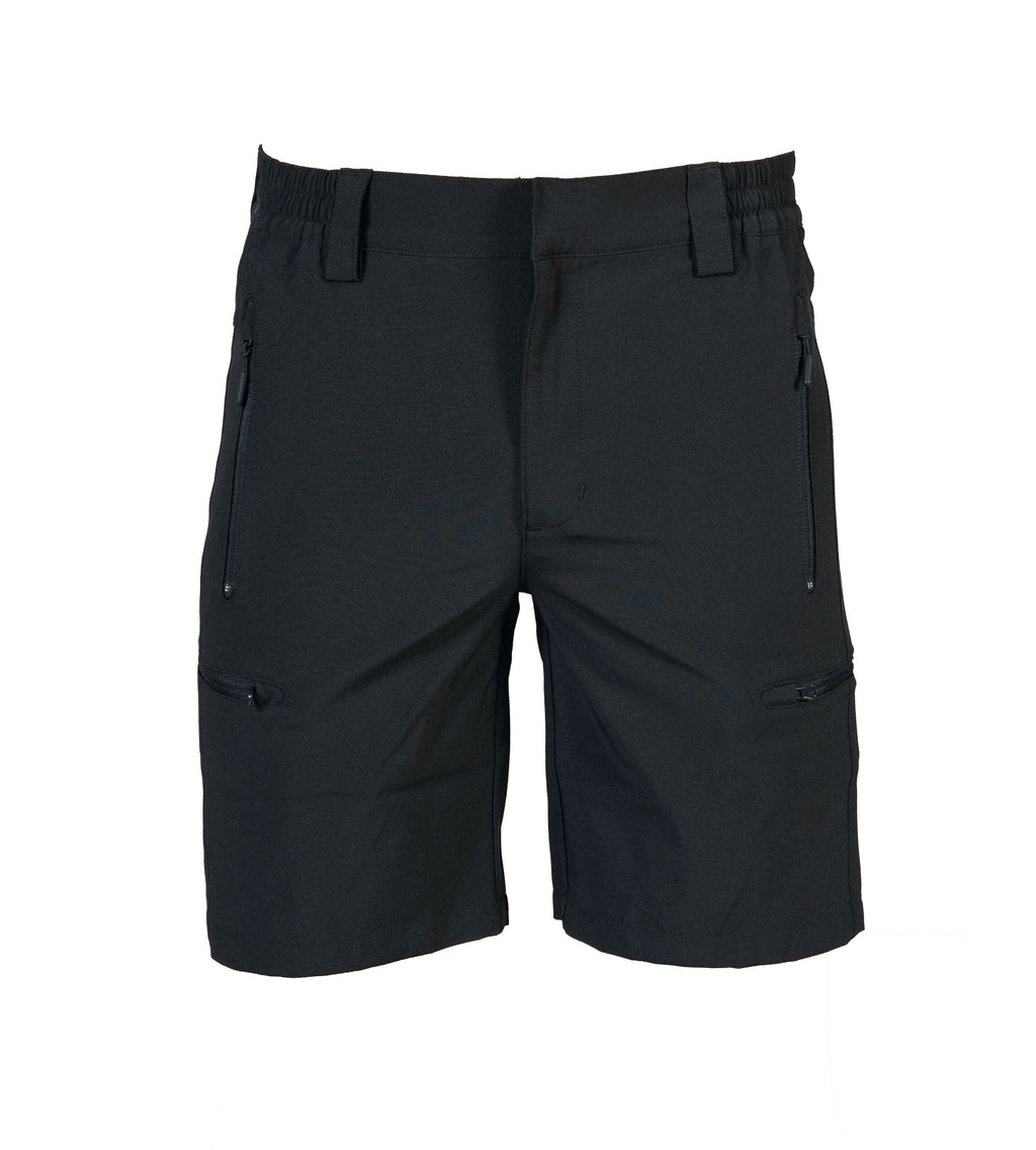 Bermuda in tessuto elasticizzato stretch- 94% polyestere – 6% elastan- Cerniere nastrate- Due tasche anteriori con zip- Due tasche laterali con zip- Una tasca posteriore con zip- Elastici in vita e passanti maggiorati- Due bott...