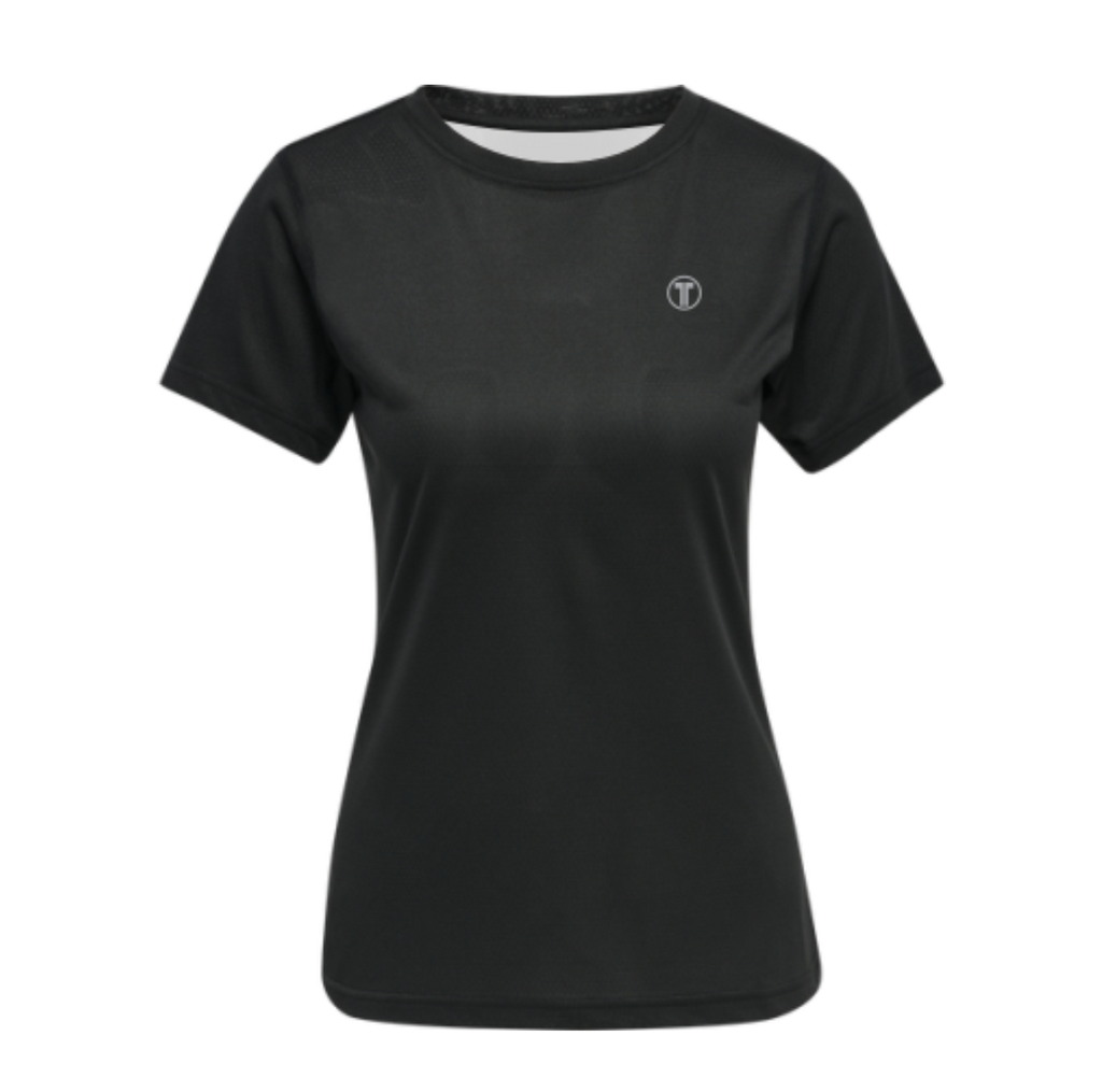 T-shirt nera realizzata in resistente tessuto jersey nido d'ape. Asciuga rapidamente.