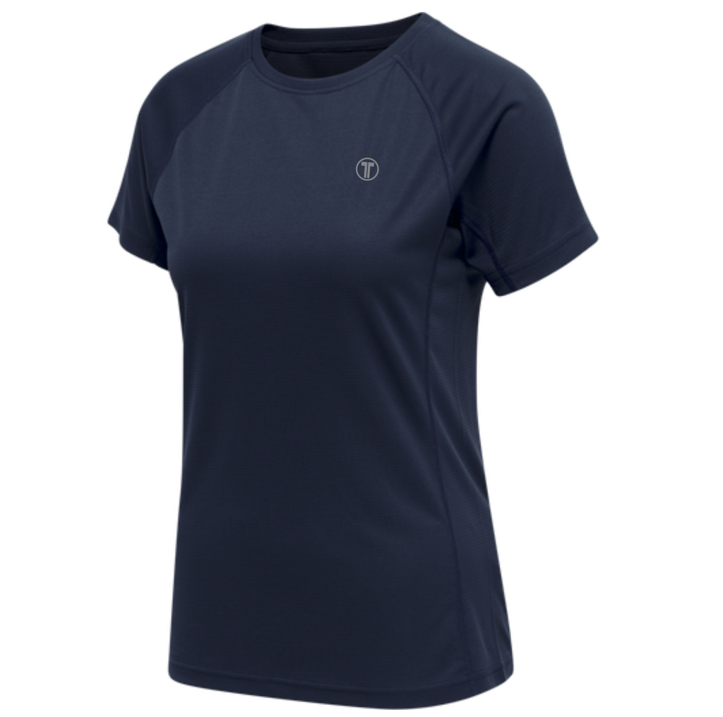 T-shirt navy realizzata in resistente tessuto jersey nido d'ape. Asciuga rapidamente.